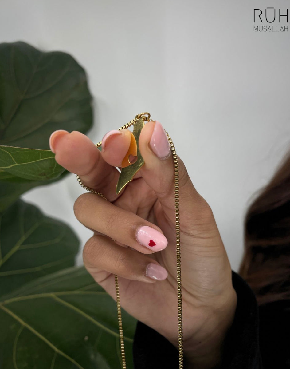Carry Palestine close to your heart with this timeless and meaningful piece. Crafted from premium stainless steel and plated in luxurious 18K gold or stainless steel, this necklace showcases the silhouette of Palestine with a delicate heart cutout-a symbol of love, unity, and unbreakable heritage.