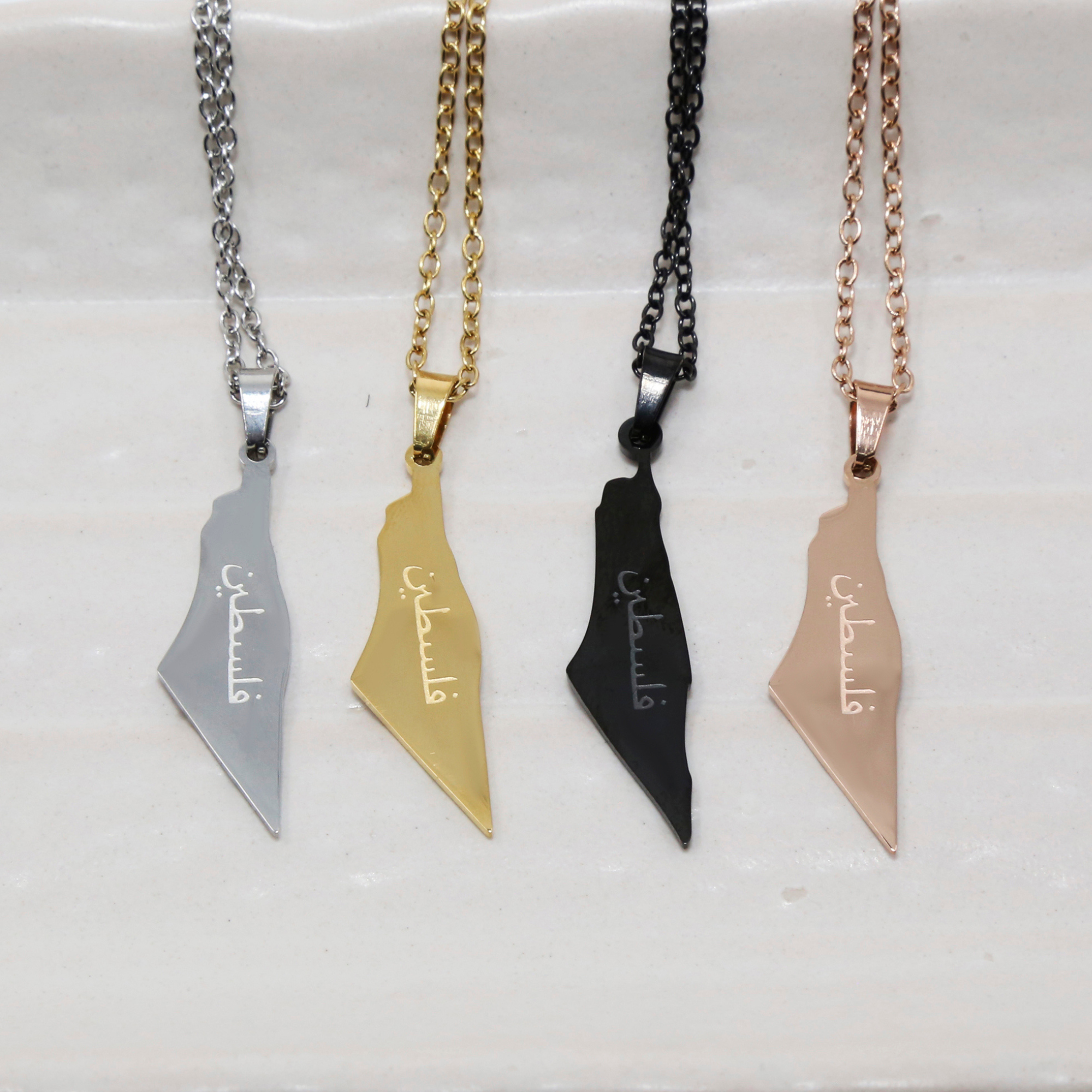 Embrace the spirit of Palestine with our beautifully crafted map outline pendant necklace, a striking representation of national pride and identity. This elegant piece is not just a necklace; it's a statement of solidarity and a wearable piece of art.