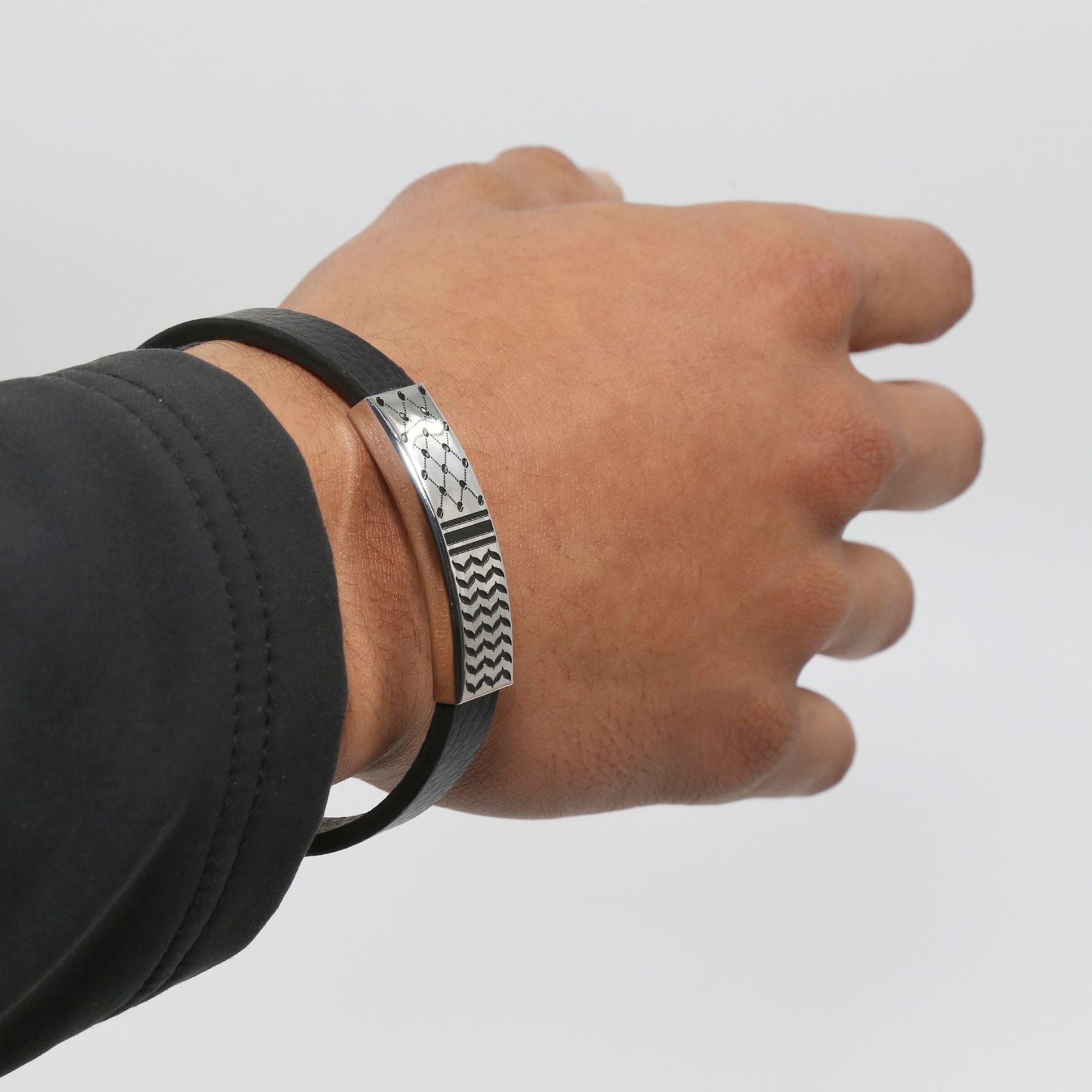 Our Keffiyeh Bracelet is not just a piece of jewelry; it's a meaningful connection to Palestine and its rich heritage. Suitable for both women and men, this engraved cuff bracelet makes a thoughtful and significant gift.