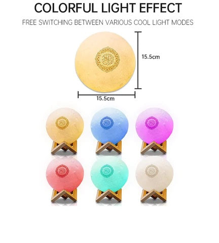 Elevate your spiritual journey with the 3D Colour Changing Moon Quran Speaker, featuring 7 vibrant colors and the soothing call to prayer.