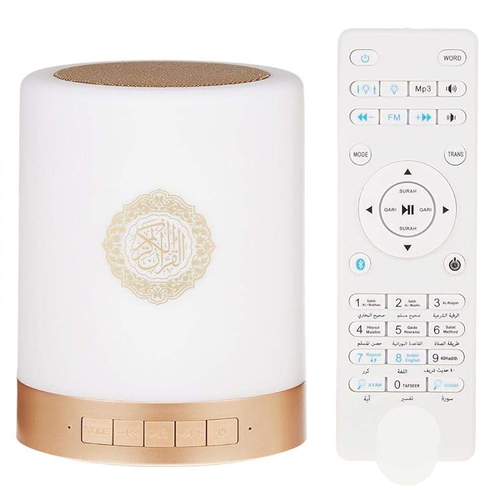 Experience the perfect blend of spirituality and modern convenience with our Smart APP Touch lamp Azan Clock Quran Speaker. This innovative device is not just a speaker—it's a multifunctional masterpiece designed to enrich your life in countless ways. Immerse yourself in the sublime recitations of the Quran, delivered in HD Quality by 18 Famous Reciters and available in 14 Different Languages for a truly immersive experience.