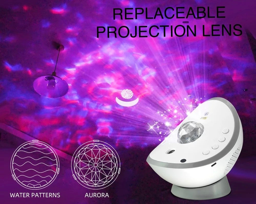 • Replaceable lampshade, switch between water patterns and Aurora at any given time.